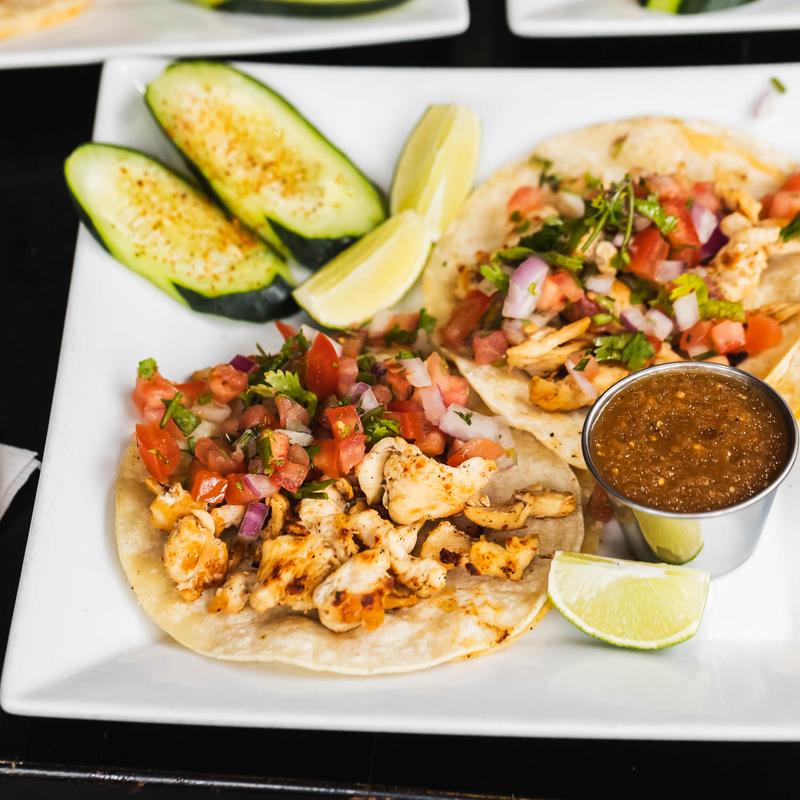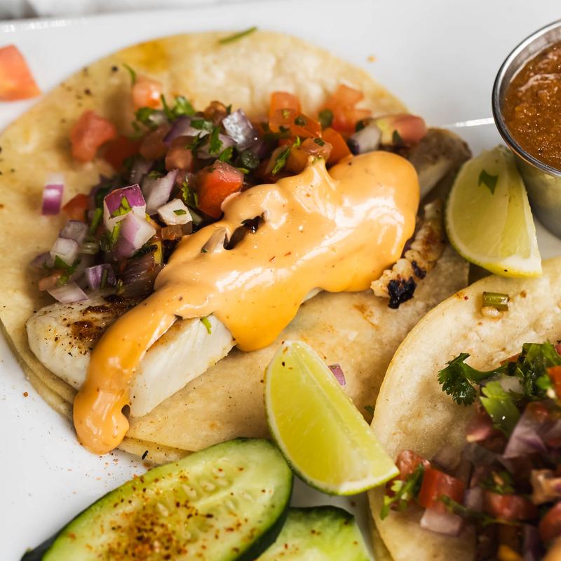 Fire-grilled salmon, rice, beans, pico de gallo, and serrano-cilantro salsa.